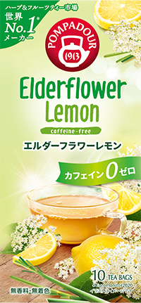POMPADOURのエルダーフラワーレモンは、春先のやわらかな日射しを感じさせるナチュラルハーブティーです。エルダーフラワーの甘い香りに、レモンのさわやかな風味をブレンドしたハーブティー。その心癒される味わいをお楽しみください。リフレッシュしたいときの一杯としてお勧めです。